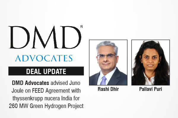 The leading law firm in India, DMD Advocates is advising Juno Joule Green Energy Private Limited (Juno Joule) in connection with its collaboration, including execution of a Front-End Engineering and Design (FEED) Engineering Services Agreement (FEED Agreement) with thyssenkrupp nucera India Private Limited, a subsidiary of thyssenkrupp nucera AG & Co. KGaA. thyssenkrupp nucera India, a global leader in high-efficiency electrolysis technologies, will design an integration concept for ‘Alkaline Water Electrolysis’ into Juno Joule’s proposed 260-megawatt green hydrogen facility in India, marking thyssenkrupp nucera India’s first green hydrogen project in the country.
