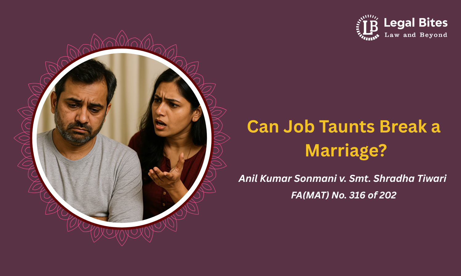 The concept of mental cruelty in matrimonial disputes under Indian law has been evolving through judicial pronouncements. While physical cruelty is easier to prove, mental cruelty—often inflicted through words, conduct, or attitude—remains complex. A pertinent question arises: Can a wife’s taunts about her husband’s unemployment amount to mental cruelty under the Hindu Marriage Act, 1955?