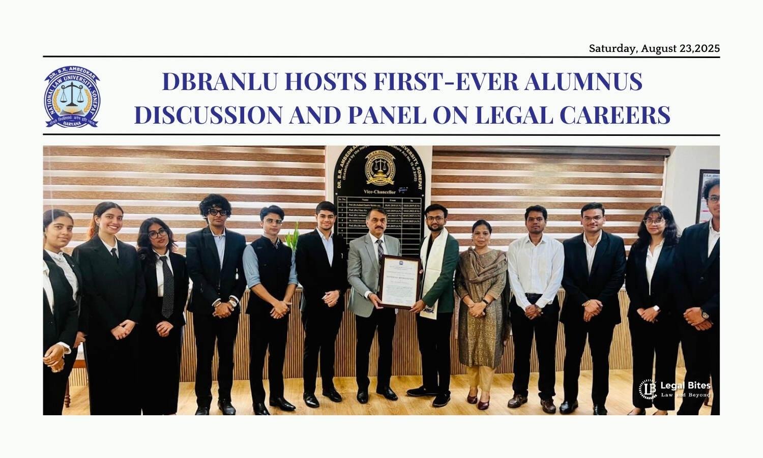 The Internship and Placement Cell and the Alumni Cell of Dr. B.R. Ambedkar National Law University (DBRANLU), under the leadership of the Hon’ble Vice Chancellor Prof. Dr. Devinder Singh, and Registrar Dr. Ashutosh Mishra successfully organized its first-ever Alumnus Discussion on Insights into Careers in Law Firms on 23rd August 2025.
