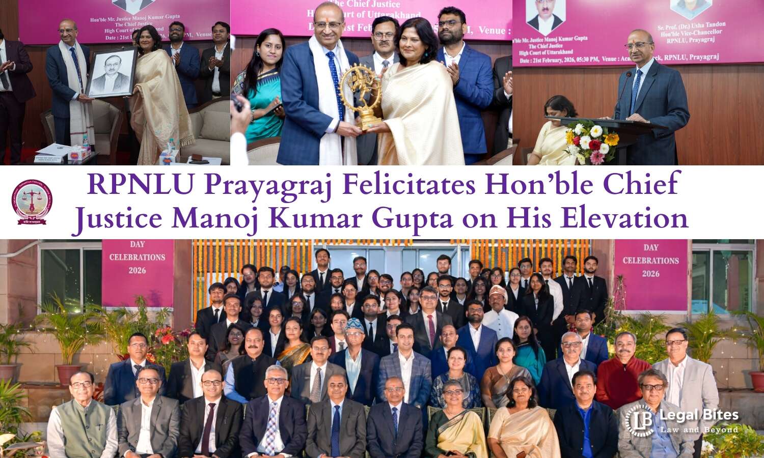 Prayagraj, 21 February 2026 – Dr. Rajendra Prasad National Law University, Prayagraj organised a solemn Felicitation Ceremony on 21st February, 2026, to honour Justice Manoj Kumar Gupta on His Lordship’s elevation as the Chief Justice of the High Court of Uttarakhand.