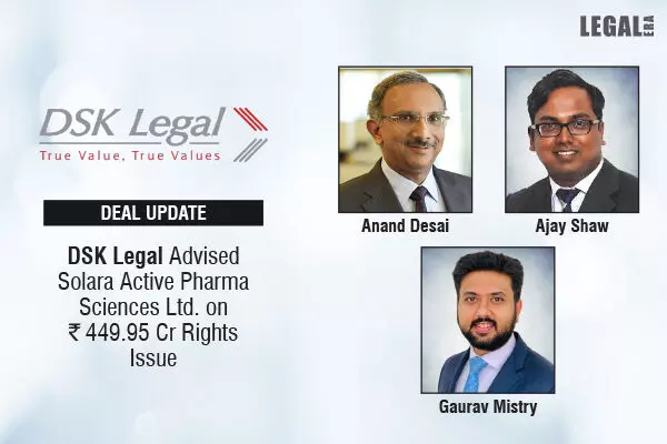 DSK Legal Advised Solara Active Pharma Sciences Ltd. On ₹449.95 Cr Rights Issue