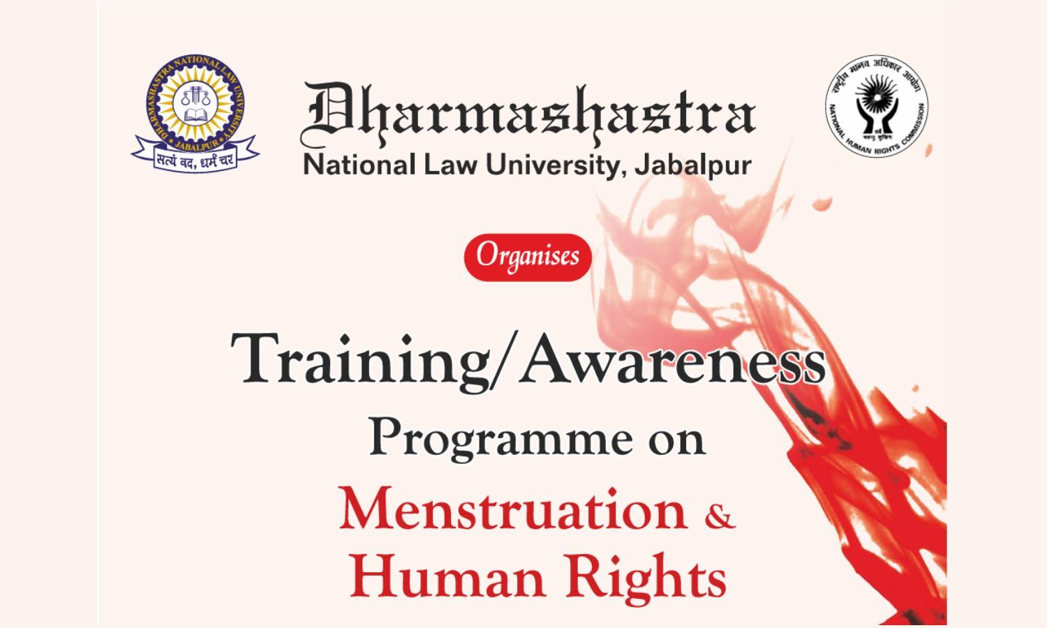 Dharmashastra National Law University, Jabalpur, is organizing a One-Day Training and Awareness Program on Menstrual Care and Human Rights, in collaboration with the esteemed National Human Rights Commission (NHRC), scheduled for February 17th, 2024.