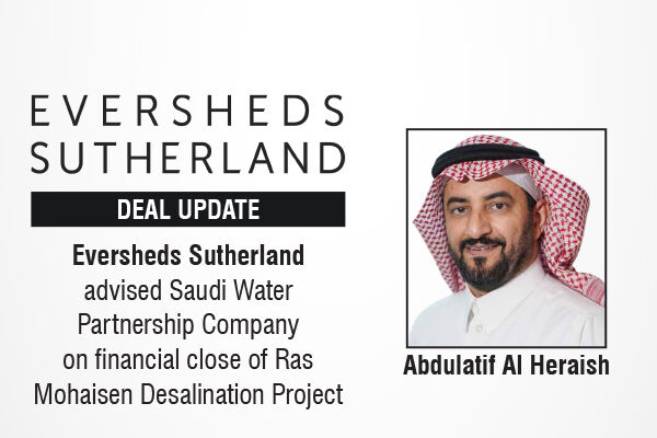 Eversheds Sutherland advised Saudi Water Partnership Company on financial close of Ras Mohaisen Desalination Project