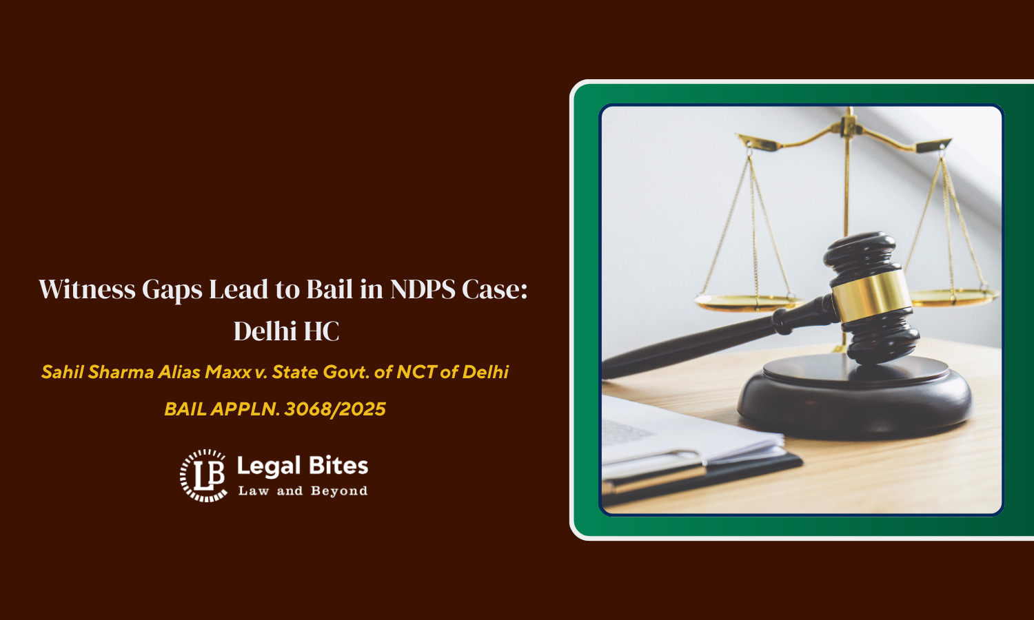 In Sahil Sharma Alias Maxx v. State Govt. of NCT of Delhi (BAIL APPLN. 3068/2025), the Delhi High Court underscored a crucial principle in NDPS prosecutions — failure to associate independent witnesses, when possible, can weaken the prosecution’s case at the bail stage. The Court noted that the lack of public witnesses and the absence of video or photographic evidence, coupled with a two-year delay in trial, justified granting bail despite the rigours of Section 37 NDPS Act.