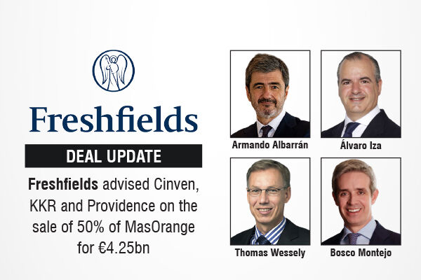The Global law firm Freshfields has advised Cinven, KKR and Providence, sponsors of Lorca JVCo Limited (“Lorca”), an entity that indirectly holds 50% of MasOrange, S.L. (“MasOrange”), in a binding sale agreement for Orange to acquire, through its wholly owned subsidiary Atlas Services Belgium, the entirety of Lorca’s indirect stake in MasOrange. Under the terms of the agreement, Lorca will receive total cash proceeds of €4.25 billion.