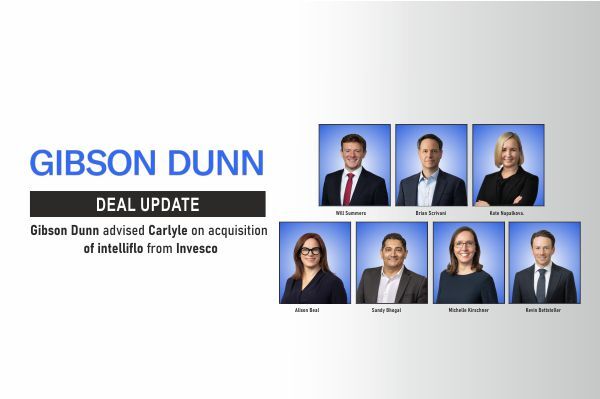 Gibson Dunn advised Carlyle, a global investment firm, on its acquisition of cloud-based practice management software provider intelliflo from global asset management firm Invesco. The transaction included intelliflo’s U.S.-based subsidiaries and was valued at up to USD 200 million.