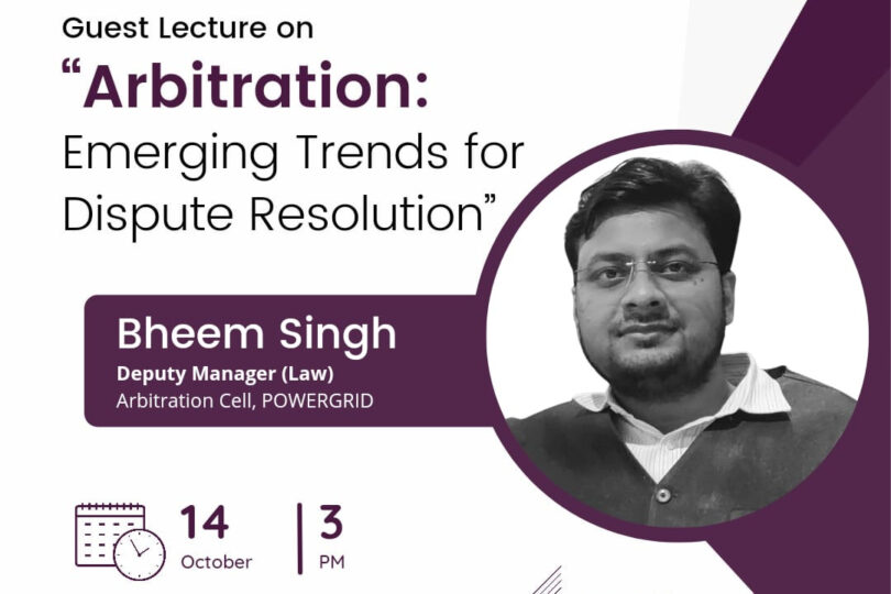 The CCADR, CNLU, is going to organise a Guest Lecture on Arbitration: Emerging Trends for Dispute Resolution on 14th October 2022 by Mr. Bheem Singh, Deputy Manager (Law) in the Arbitration Cell of POWERGRID.