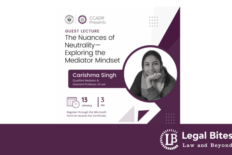 The CCADR, CNLU, is going to organise a guest lecture on “The Nuances of Neutrality: Exploring the Mediator Mindset” on 16th January, 2023..
