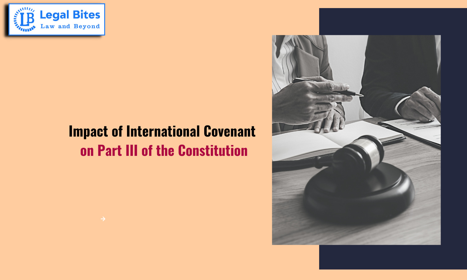 The article ‘Impact of International Covenant on Part III of the Constitution’ by Anant highlights the alignment of the Fundamental Rights guaranteed under Part III with the principles outlined in the International Covenant on Civil and Political Rights, underscoring India’s commitment to international human rights standards.