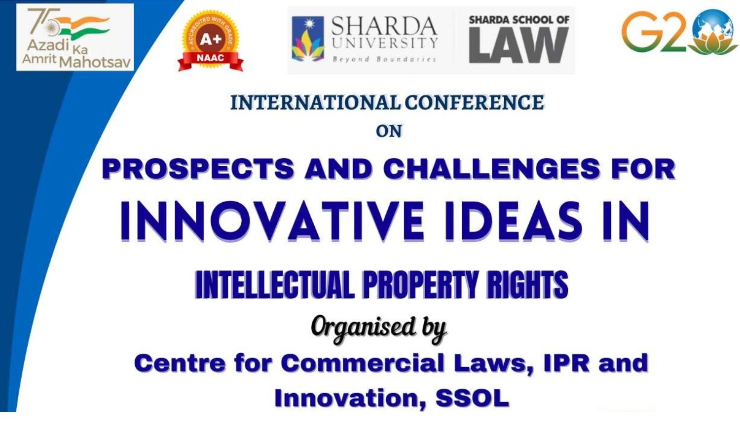 Sharda School of Law, Sharda University is organizing a two days International Conference on “Prospects and Challenges for Innovative Ideas in Intellectual Property Rights” from 1st September to 2nd September 2023. This conference is going to play a very important role in the development of individual and society as IPRs protects and encourages the creators for innovation and economic gain. It also leads to healthy competition among creators and users, which ultimately leads to the progress of society. The transfer of technology is important for developmental research. It is helpful in the solution to global challenges in the field of alternate energy resources, new products to consumers and pharmaceutical development.
