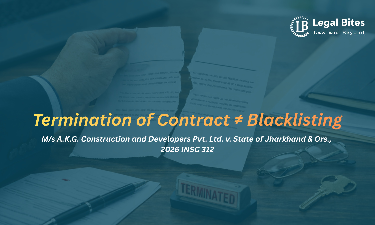 The Supreme Court of India addressed this issue in M/s A.K.G. Construction and Developers Pvt. Ltd. v. State of Jharkhand & Ors. (2026), delivering a significant ruling that clarifies the legal distinction between termination and blacklisting. The Court emphatically held that blacklisting is not a natural or automatic consequence of termination and requires independent application of mind and adherence to principles of natural justice.