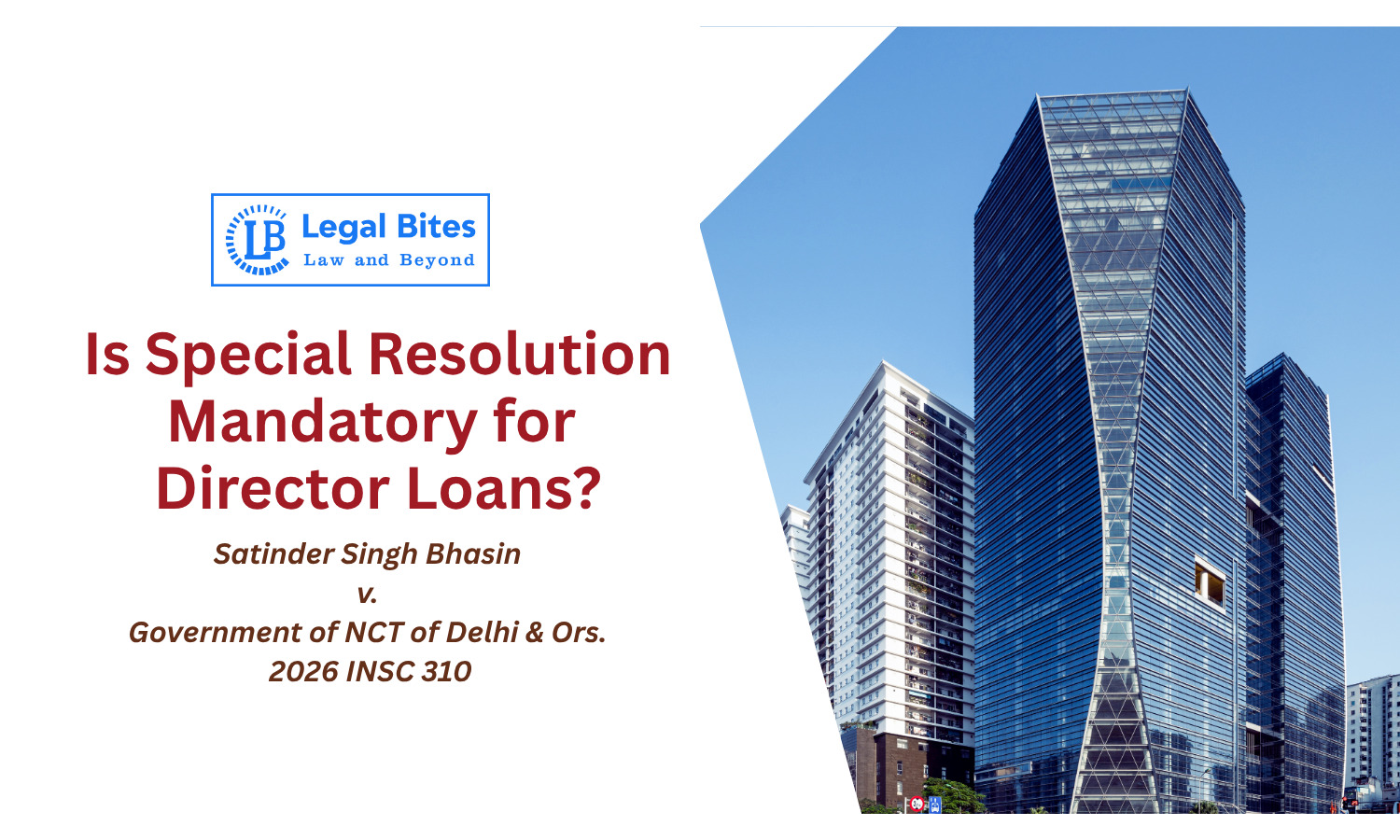 The Supreme Court of India in Satinder Singh Bhasin v. Government of NCT of Delhi & Ors. (2026 INSC 310) has delivered a significant ruling on the legality of loans advanced by a company to its director. The case, though arising in the context of bail conditions in a criminal proceeding, raised an important corporate law question: whether a company can fund its director’s personal liabilities without complying with statutory requirements under the Companies Act, 2013.