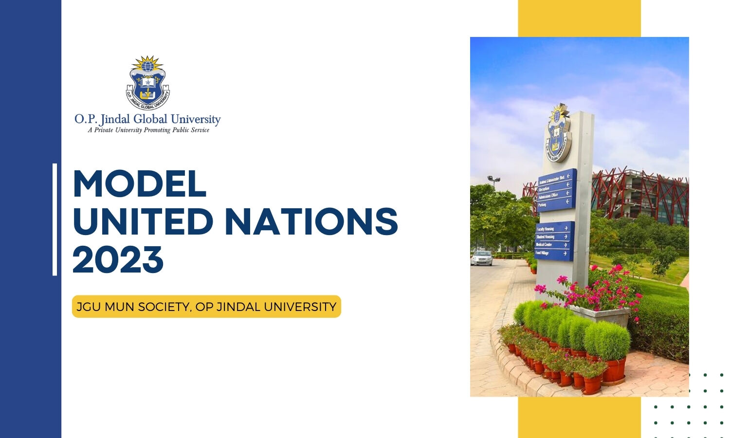 JGU MUN Society, O.P. Jindal Global University is organizing a Model United Nations, scheduled to be held from 21st to 22nd January 2024.