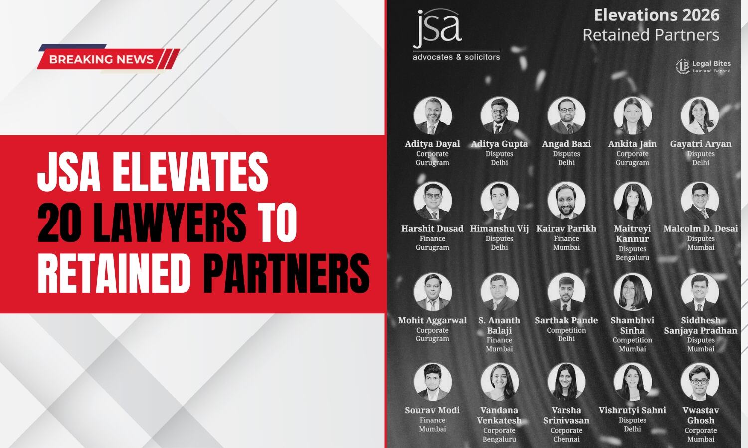 India, April 1, 2026: JSA Advocates and Solicitors has elevated 20 lawyers to its retained partner category as part of its annual promotions cycle, taking its total partner count to 183, including 66 equity partners. Seven of the newly elevated partners are women. The firm said the move aligns with its ongoing focus on diversity, with women accounting for nearly half of its legal workforce.
