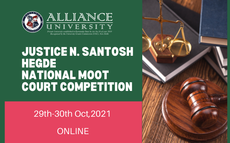 Justice N Santosh Hegde National Moot Court Competition will be organized by Alliance University (Online 29th – 30th Oct 2021) – Register by 20th October 2021.