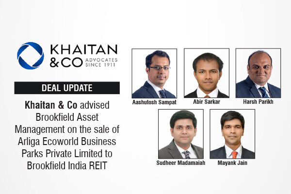 The leading law firm in India, Khaitan & Co advised Brookfield Asset Management on the sale of Arliga Ecoworld Business Parks Private Limited to Brookfield India REIT for USD 1.5 billion, marking the largest transaction involving a Real Estate Investment Trust in India to date.