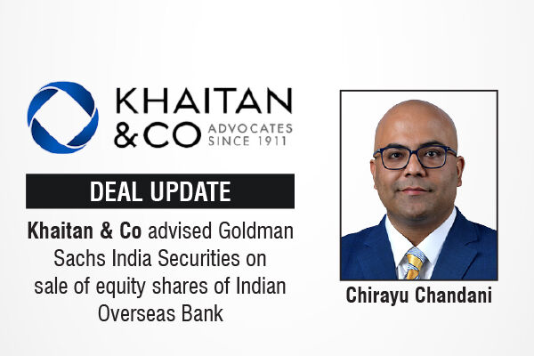 The leading law firm in India, Khaitan & Co advised the broker, Goldman Sachs India Securities, on the sale of equity shares of Indian Overseas Bank held by the President of India, acting through the Department of Financial Services, Ministry of Finance, Government of India, for a total consideration of INR 1,421 crores.
