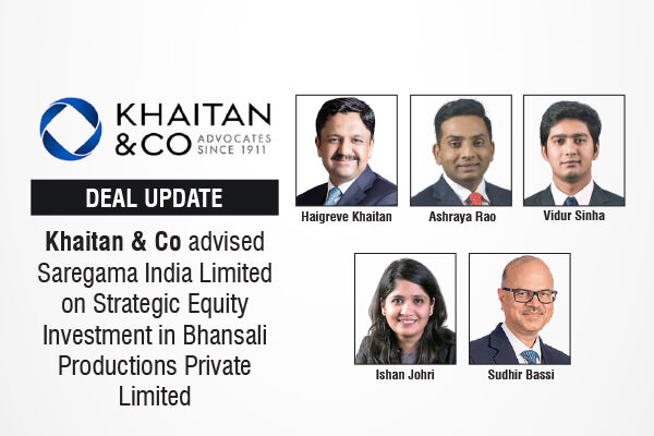 The leading law firm in India, Khaitan & Co advised Saregama India Limited (“Company”) in connection with its strategic equity investment in Sanjay Leela Bhansali’s Bhansali Productions Private Limited (BPPL) through: