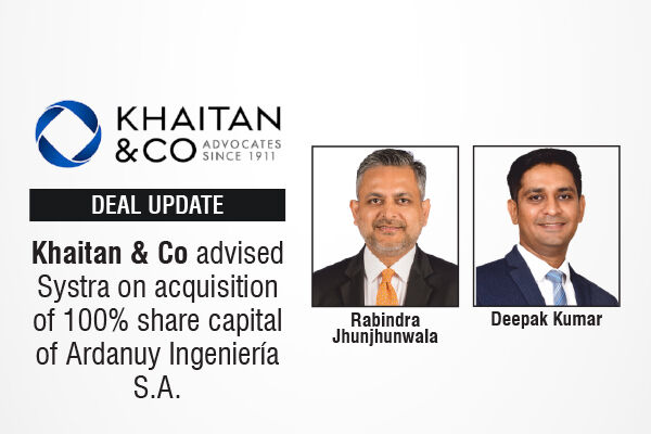 The leading law firm in India, Khaitan & Co, advised Systra on Indian aspects of the deal in relation to the acquisition of 100% of the share capital of Ardanuy Ingeniería S.A., a Spanish company renowned for its expertise in rail systems, metro, and urban transport, with branches and subsidiaries in South America, India, and the Baltic countries. The acquisition will strengthen Systra’s technical expertise in transport systems and infrastructure and expand its footprint across Europe, Latin America, India, and the Baltics.
