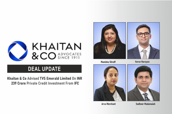 Khaitan & Co advised TVS Emerald Limited on INR 239 Crore private credit investment from IFC