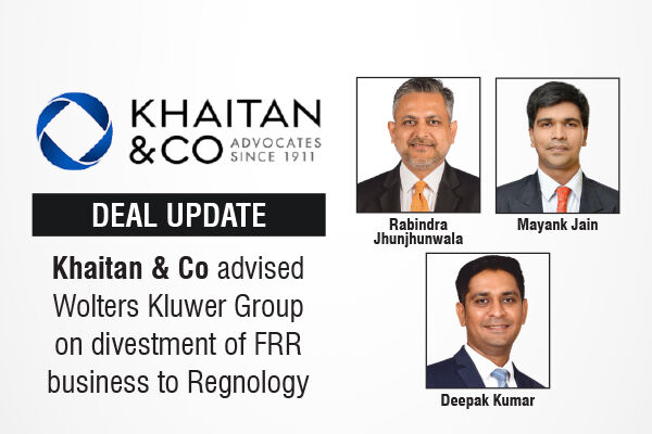 The leading law firm in India, Khaitan & Co assisted the Wolters Kluwer Group, a global leader in professional information, software, and services across healthcare, tax and accounting, financial and corporate compliance, legal and regulatory, corporate performance and ESG sectors, on the divestment of their India Financial Risk and Regulatory Reporting (FRR) Business to Regnology Group GmbH.