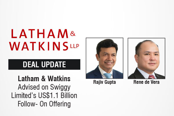 The global law firm, Latham & Watkins, advised the book running lead managers as sole international counsel on Swiggy Limited’s US$1.1 billion follow-on offering on the Bombay Stock Exchange (BSE) and the National Stock Exchange of India Limited (NSE).
