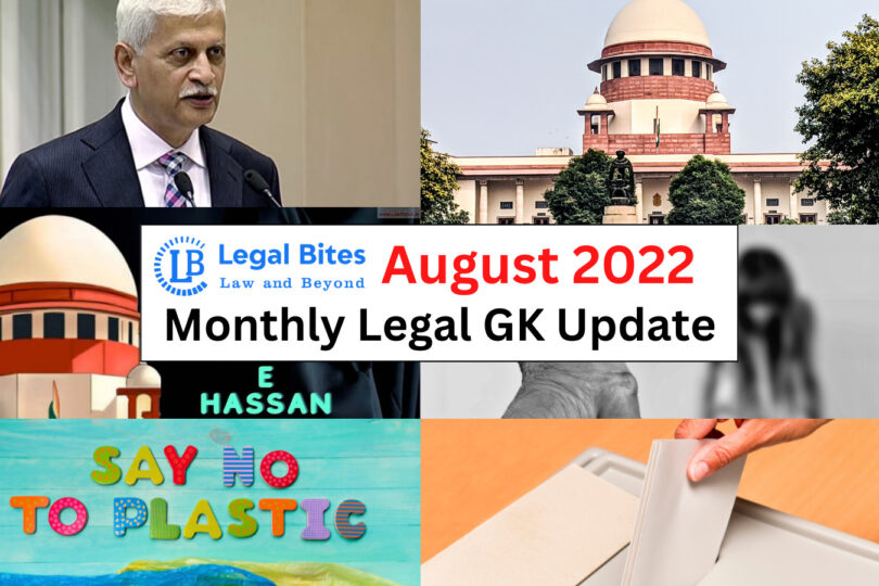 Here are Legal Bites August 2022 monthly GK updates. The notable happenings of the months were related to the appointment of Justice UU Lalit as CJI, maritime mission ‘Nari Shakti’, Central University (Amendment) Bill 2022, the apex court’s decision on Talaq-e-Hasan, and so on. We have covered all the happenings in the gist so that it helps the readers to remember all legal and current updates about August 2022 most efficiently and easily.