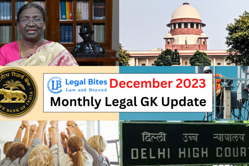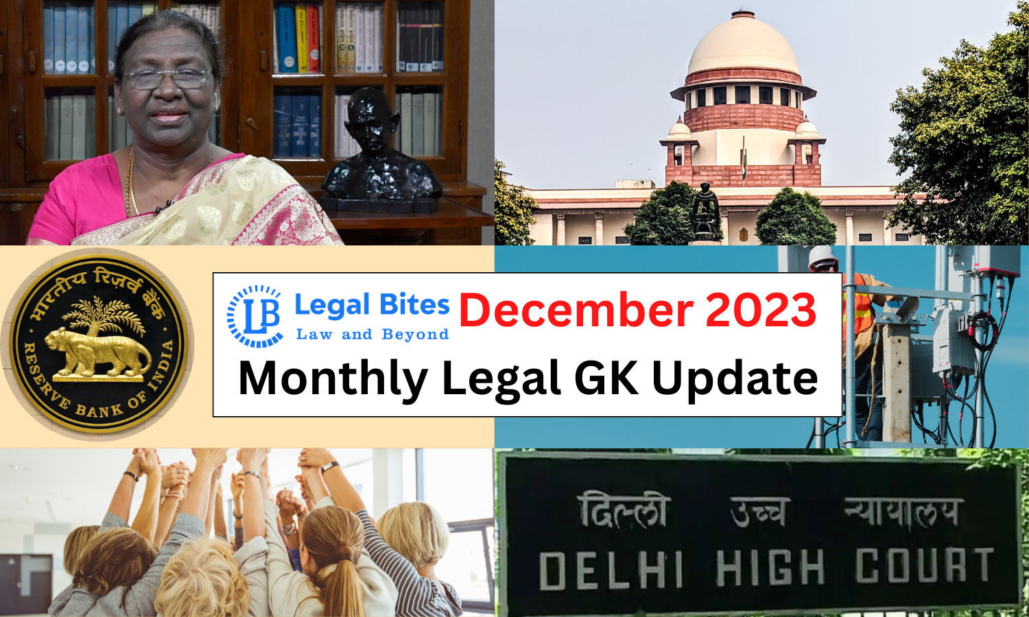 Here are Legal Bites December 2023 monthly GK updates. The notable happenings of the months were related to the IBBI, the Supreme Court verdict on Article 370 Abrogation, the enactment of three new criminal laws, and so on. We have covered all the happenings in the gist so that it helps the readers to remember all legal and current updates about December 2023 most efficiently and easily.