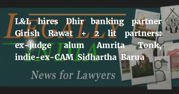 L&L hires Dhir banking partner Girish Rawat + 2 lit partners: ex-judge alum Amrita Tonk, indie-ex-CAM Sidhartha Barua