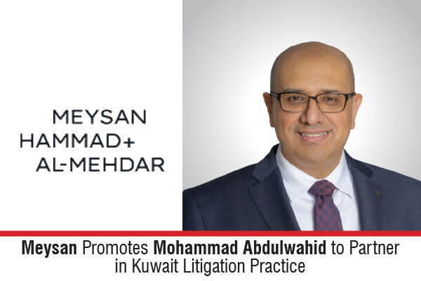 The international law firm, Meysan is pleased to announce the promotion of Mohammad Abdulwahid, Senior Counsel, to Partner. Mohammad brings extensive experience in litigation and capital markets regulation and laws in Kuwait, advising and representing clients in complex, high-value matters.