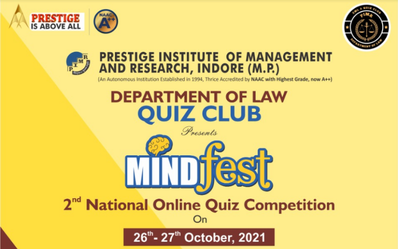 Mind Fest 2nd National Online Quiz Competition on 26-27 October 2021 will be organised by the Department Of Law, PIMR. The Last date for registration is 23rd October 2021.