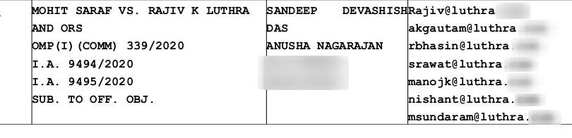 Mohit Saraf v Rajiv K Luthra & Ors in Delhi HC Friday for interim pre-arb injunction, instructs ex-Trilegalites Das, Mukherjee [LIVE]