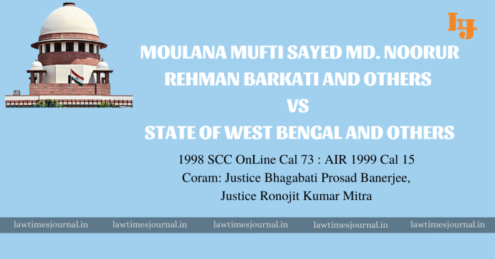 [10]Moulana Mufti Sayed Md. Noorur Rehman Barkati and others v. State of West Bengal and others, 1998 SCC OnLine Cal 73