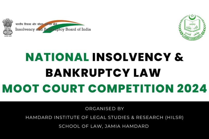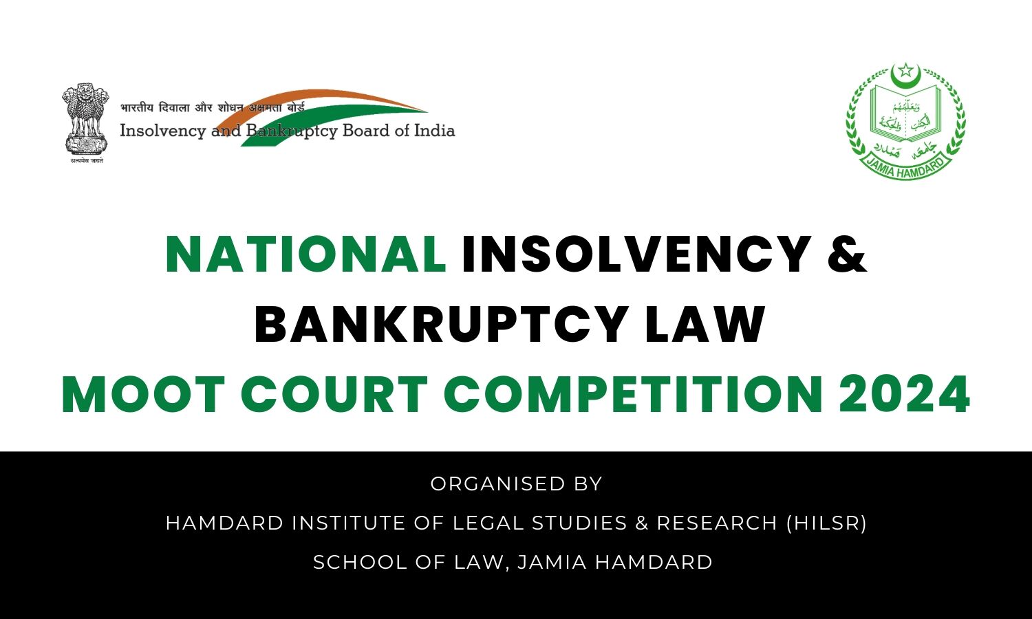 Moot Court Committee, Hamdard Institute of Legal Studies & Research (HILSR), School of Law, Jamia Hamdard in collaboration with the Insolvency and Bankruptcy Board of India (IBBI) is pleased to announce National Insolvency & Bankruptcy Law Moot Court Competition 2024 from 23rd – 25th February 2024.
