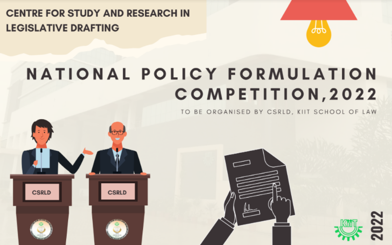 School of Law, KIIT Deemed to be University is inviting registrations for National Policy Formulation Competition 2022 before 20th March 2022.