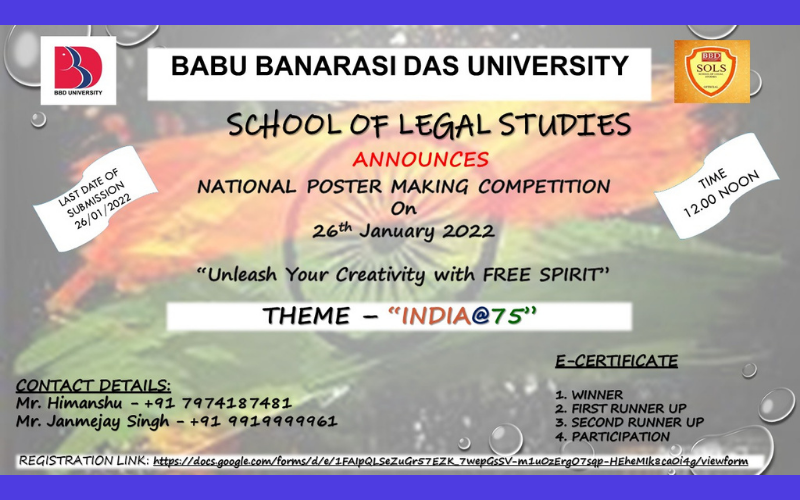 BBD University is organising National Poster Making Competition, submissions of which are accepted before 26th January 2022 (12:00 Noon).