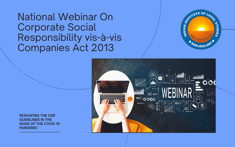 National Webinar on Corporate Social Responsibility vis-à-vis Companies Act 2013 – reshaping the CSR guidelines in the wake of the covid 19 pandemic on 9th October 2021 from 11:00 a.m. onwards by Indian Institute of Legal Studies.