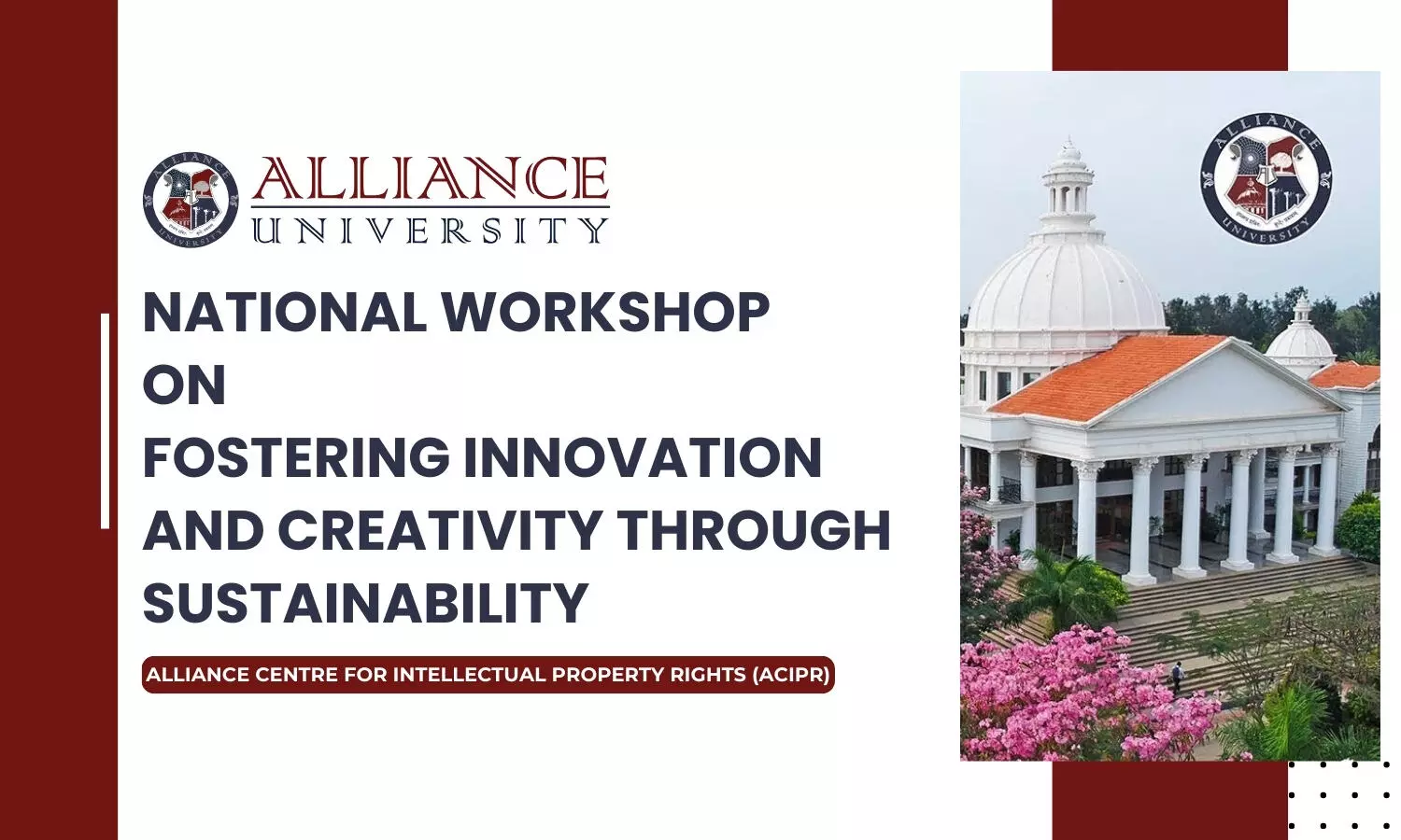 Alliance Centre for Intellectual Property Rights (ACIPR), Alliance School of Law, Alliance University, Bengaluru, is organising a one-day “National Workshop on Fostering Innovation and Creativity through Sustainability towards a Common Future” to commemorate World Intellectual Property Day, 2024. Intellectual Property Rights (IPR) and Sustainable Development Goals (SDGs) are intrinsically intertwined, fostering innovation and environmental stewardship.