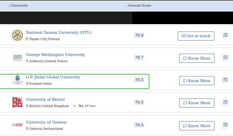 This year, JGLS’ parent university, OP Jindal Global University was ranked 76th with a score of 70.5, which is around 2 points higher than last year’s.