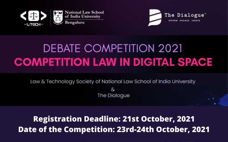 NLSIU National Debate Competition on 23rd and 24th October 2021 will be organised by The Law and Technology Society.