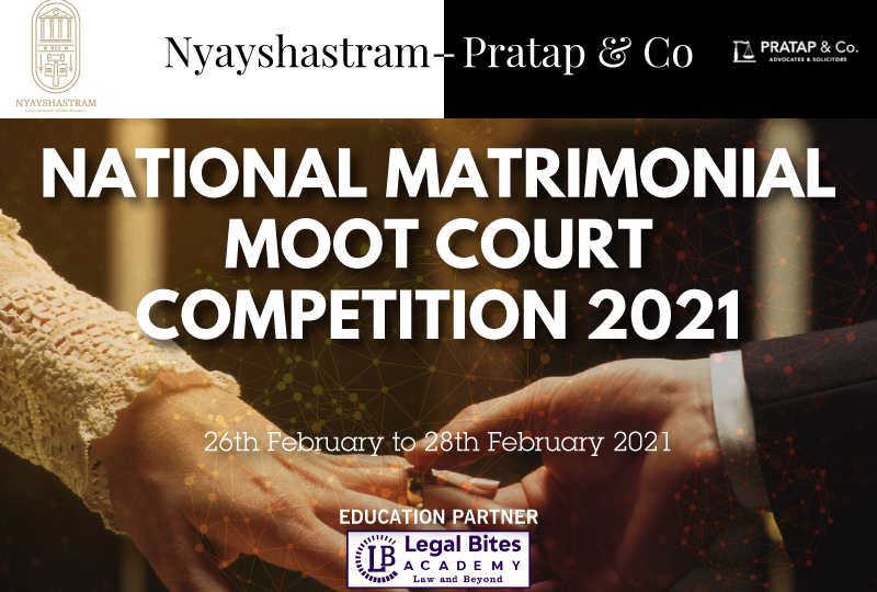 Nyayshastram in association with Pratap & Co., New Delhi is conducting “Nyayshastram – Pratap & Co National Matrimonial Moot Court Competition, 2021” scheduled to be held from 26th February to 28th February 2021.