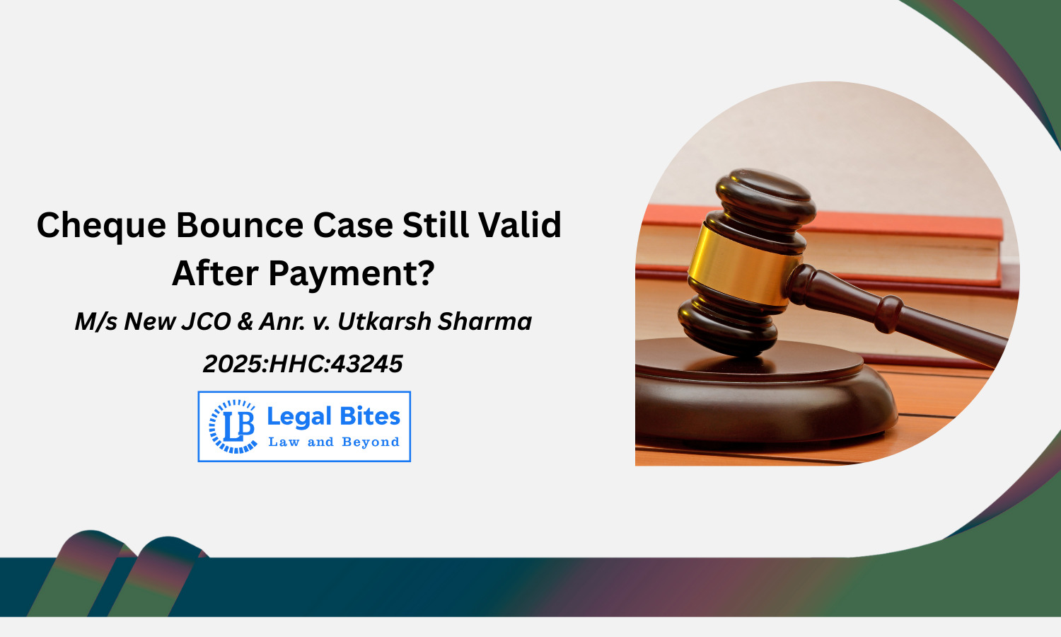 In M/s New JCO & Anr. v. Utkarsh Sharma (decided on 11 December 2025), the Himachal Pradesh High Court reaffirmed a crucial principle: once the cause of action under Section 138 NI Act has arisen, any subsequent payment by the drawer does not wipe out the offence, though it may have relevance at the stage of sentencing or compounding. The judgment is significant as it addresses a commonly raised defence—that payment made before filing of the complaint, but after expiry of the statutory notice period, nullifies criminal liability.