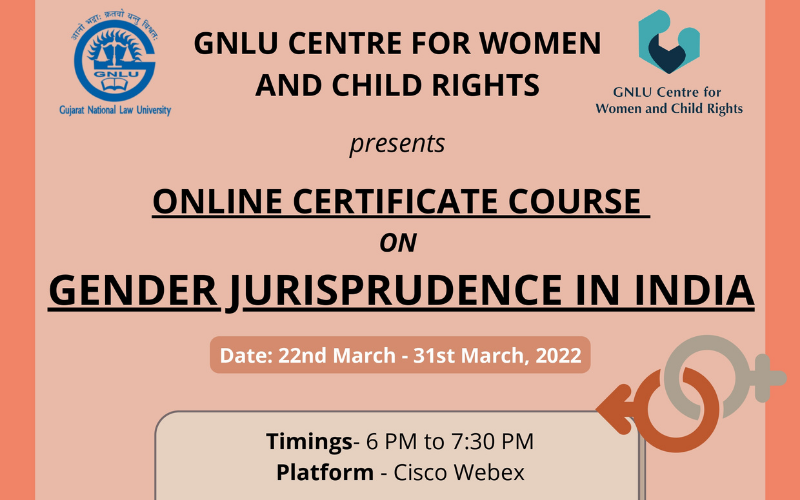 GNLU Centre for Women and Child Rights is organising an online certificate course on Gender Jurisprudence in India and is inviting registration before 21st March 2022.