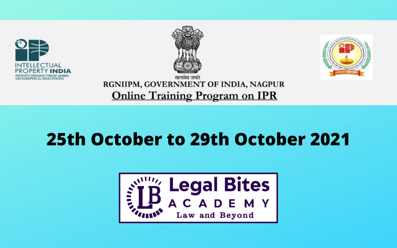 Online Training Program on IPR By RGNIIPM, Government Of India, Nagpur from 25th October to 29th October 2021. RGNIIPM, Government of India is a Central Government Institute under the Ministry of Commerce & Industry which is engaged in conducting training programmes, workshops relating to Intellectual Property Rights (IPR’s) i.e. Patents, Designs, Trademarks, GI, Copyrights etc. Recently, RGNIIPM has received many requests for the conduction of online webinars. Hence it is decided to conduct such programs to spread awareness in the public interest