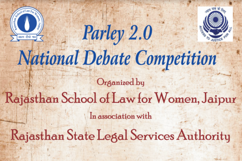 PARLEY 2.0, a National Debate Competition is being organised by Rajasthan School of Law for Women, Jaipur (Raj,) in association with Rajasthan State Legal Services Authority from 30th to 31st May, 2022.