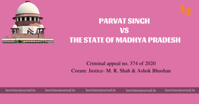 In the Supreme Court of India Criminal appellate jurisdiction Criminal appeal no. 374 of 2020 Arising out of slp (crl) no. 9252 of 2018 Petitioner Parvat Singh Respondent The State of Madhya Pradesh Date of Judgement 2nd March, 2020 Bench Hon’ble Justice M. R. Shah & Ashok Bhushan