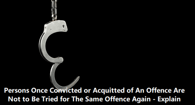 Persons Once Convicted or Acquitted of An Offence Are Not to Be Tried for The Same Offence Again – Explain