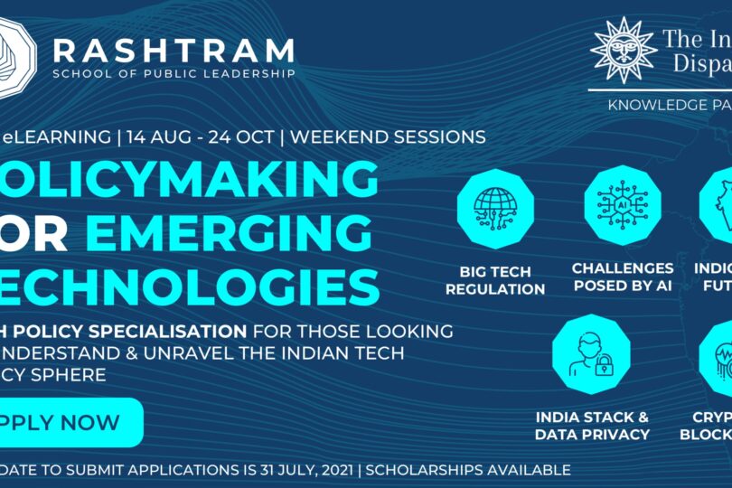 Policymaking for Emerging Technologies is an eleven-weekend online specialisation programme for professionals. The programme will help build domain knowledge in technology policy, understand new approaches for regulating disruptive technologies and seek practical toolkits to launch into a career in the tech-policy ecosystem in India. Sessions will be organised during the weekend for ease of delegate participation.