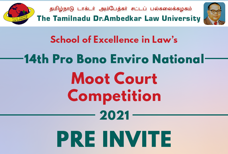 School of Excellence in law takes immense pleasure in announcing the 14th Edition of the Pro Bono Enviro National Moot Court Competition, the flagship event of the institution. The institution has always strived to promote the interests of the student community and in addressing pressing issues, and has successfully conducted the previous 13 editions with overwhelming participation from across the country.