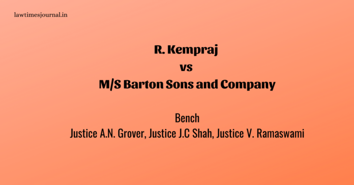 In 1951, The appellant Kempraj Shah gave property in Bangalore to the respondents for ten years on lease. It was subject to renewal on the same terms and conditions before the expiry of the current lease, for as many periods of Ten Years. In 1961, on being asked for the renewal of the lease, the Lessor, Mr. Kempraj denied. Therefore, Barton Son and Company filed a suit for specific performance before a trial court and it subsequently got decreed in all, the trial court, the first appellate court, and the high court. This was a case before the Supreme Court by Mr. Kempraj by the way of Special leave.